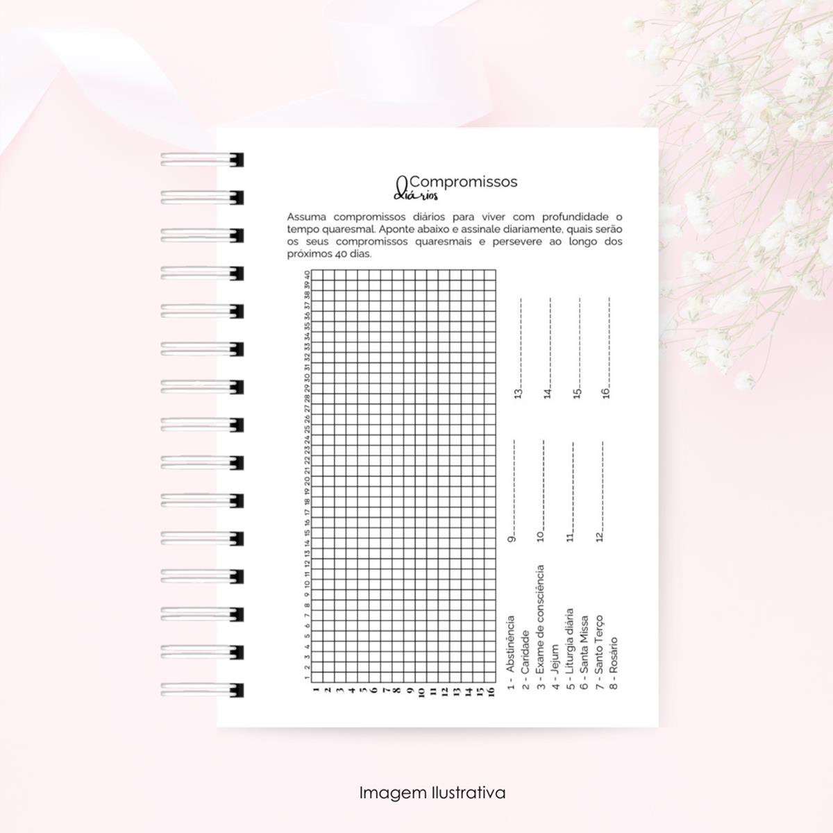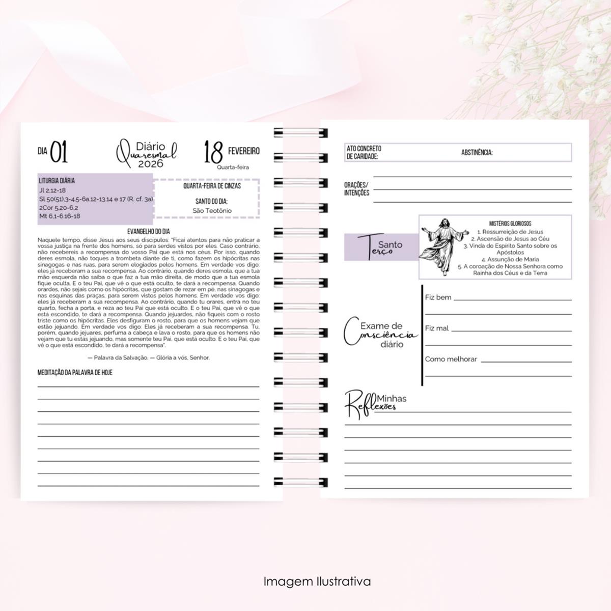 O Diário Quaresmal foi criado para te acompanhar durante os 40 dias que antecedem a Páscoa, convidando você a desacelerar, refletir e se reconectar com Deus. Mais do que um diário, ele é um espaço sagrado de escuta interior, onde cada página conduz à oração, ao autoconhecimento e à vivência consciente da fé no dia a dia.